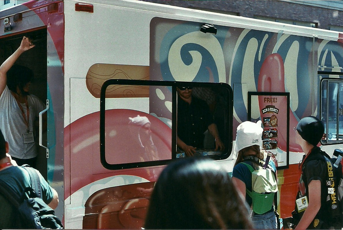 A few other things found in the wild… The thrill of the hunt came when I had to track the Adult Swim ice cream truck that handed out free Ben & Jerry’s. Man, do these people know how to market. Also a relic of the time included semi trucks driving down Harbor Drive. The resulting picture was of that undead dude’s terrifying mug found below. Also featured, the double deckerTrue Blood buses meandering in front of The Con. More on this series later.