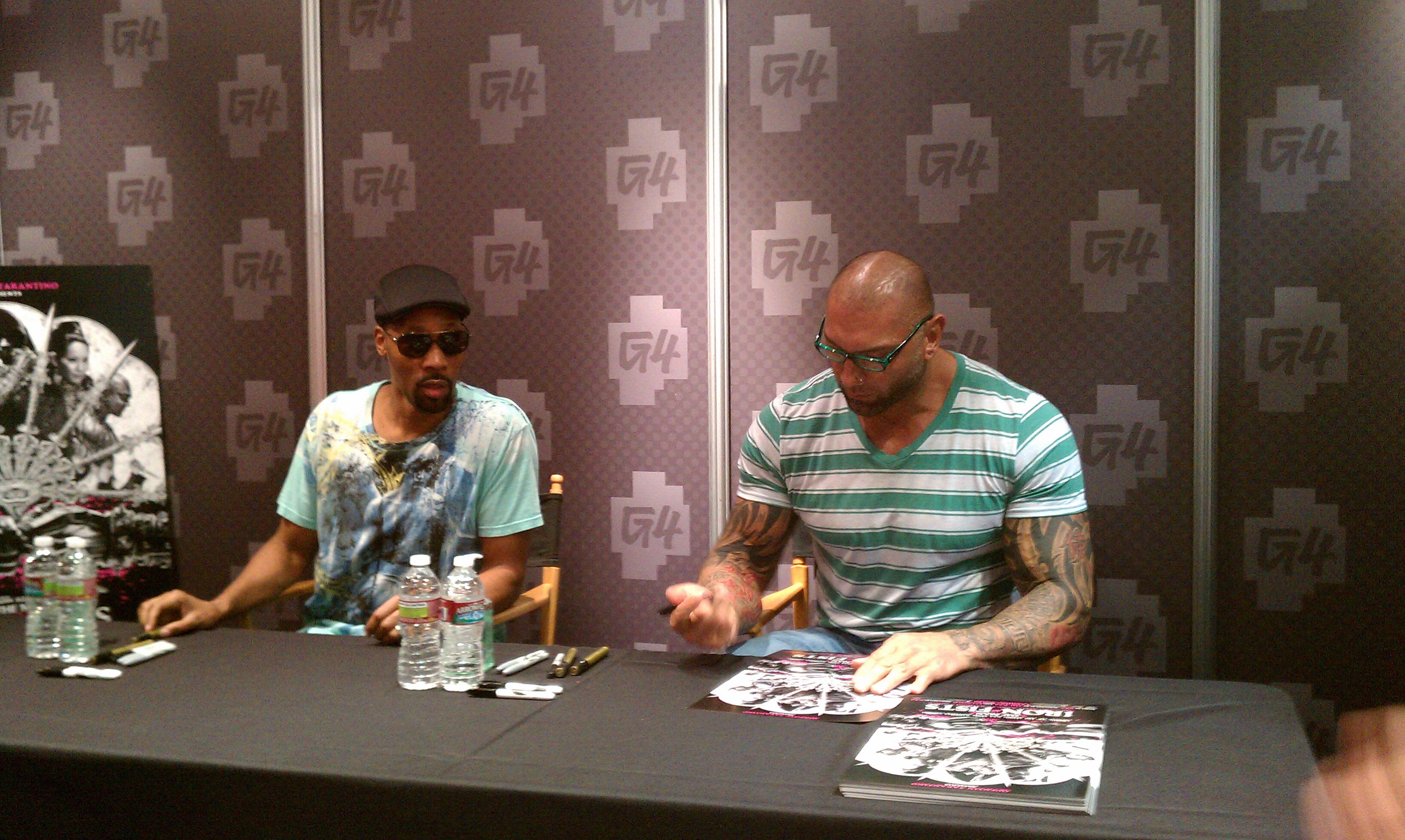 The Con is the only place where worlds collide and create the wildest, most unexpected moments. Like getting attending a signing of the RZA and Bautista for The Man with the Iron Fists. A bonus, very Con moment is what the guy starts chanting in the crowd. Classic.